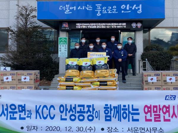 KCC 안성공장 관계자는 “안성시에서 사업을 하면서 받았던 지역사회의 사랑을 조금이나마 보답하기 위해 이웃돕기 물품을 기부하게 되었다”며 “서운면 내 취약계층들에게 많은 도움이 되길 바란다”고 전했다.