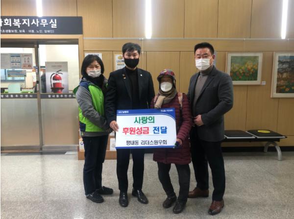 평내동 리더스 원우회(회장 배인성)는 31일 연말을 맞이하여 지역 내 소외계층 홀몸어르신의 따뜻한 연말연시를 위한 후원성금을 직접 전달하였다.