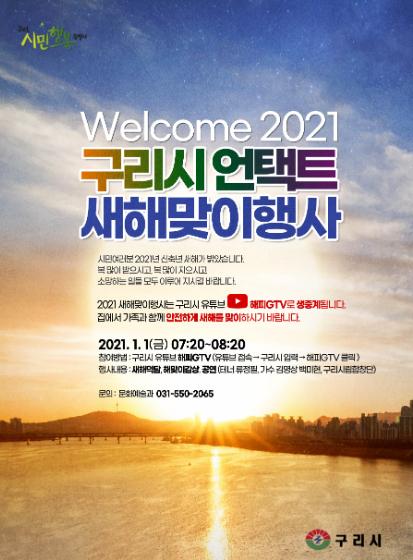 구리시는 2021년 1월 1일 오전 7시 20분부터 60분간 구리한강시민공원에서 구리시 공식 유튜브 해피GTV로 2021년 언택트 새해맞이를 생중계 진행한다.