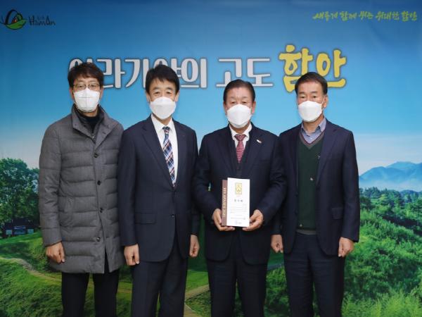 조근제 함안군수는 지난 12월 31일 군수실에서 김상석 경남축구협회장으로부터 대한축구협회장 명의의 감사패를 전달받았다.