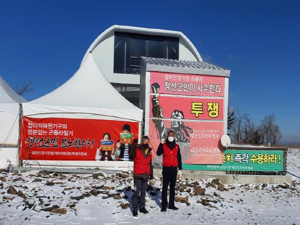 정선 알파인경기장 곤돌라를 반드시 사수하겠다는 굳은 의지를 갖고 관내 160여개 기관·사회단체가 대정부 투쟁에 참여하고 있다.