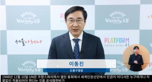 이동진 도봉구청장은 “도봉구가 한국인권도시협의회 회장도시로서 지방정부차원의 인권정책을 선도해오고 있으며, 앞으로도 누구나 차별없이 참여하고 존중받는 인권도시 도봉을 만들기 위해 최선을 다하겠다.”고 밝혔다.