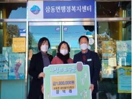 장덕례 삼동면새마을부녀회장이 지난해 12월 31일 이웃사랑 나눔 실천에 앞장서기 위해 삼동면행정복지센터(면장 손미경)에 현금 100만원을 기탁하였다.