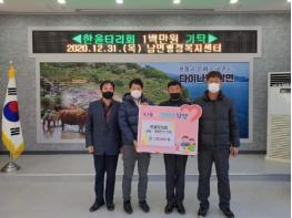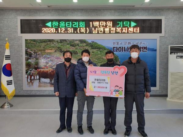 한울타리회는 31일 연말연시를 맞아 관내 어려운 소외계층과 따뜻한 사랑을 나누고자 성금 100만원을 남면행정복지센터에 기탁했다.