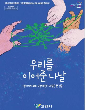 고양시는 코로나19 대응 ‘함께 가는 공공일자리 브랜드’인 고양 희망알바6000의 백서인 ‘우리를 이어준 나날(부제: 살아가기 위해 고양시민이 내딛은 한 걸음)’을 제작했다고 밝혔다.