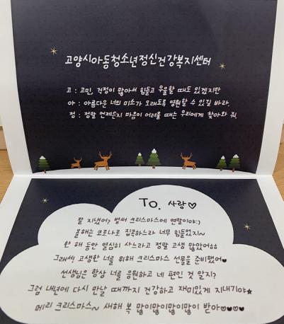 고양시는 고양시아동·청소년정신건강복지센터가 코로나19로 격리된 일상 때문에 어려움을 겪는 센터 등록회원 가정을 대상으로 코로나 블루 예방을 위한 4차 ‘마인드 헬프(MIND HELP)’ 프로젝트를 진행했다고 밝혔다.