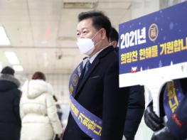 철산역에서 내린 박 시장은 지하철 7호선 철산역으로 이동해 출근하는 시민에게 새해 인사를 전했다.
