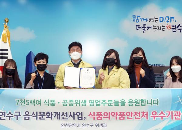 연수구가 식품의약품안전처에서 주관한 ‘2020년 음식문화개선사업 평가’에서 음식문화개선분야 5년 연속 우수기관으로 선정되어 식약처장 기관표창을 수상했다