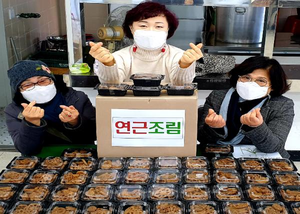 구입한 재료를 활용해 여러 위원들이 봉사에 참여, 반찬 한 가지씩을 후원하고 있으며 지난 달 오징어무침에 이어 이달에는 연근조림을 후원했다.