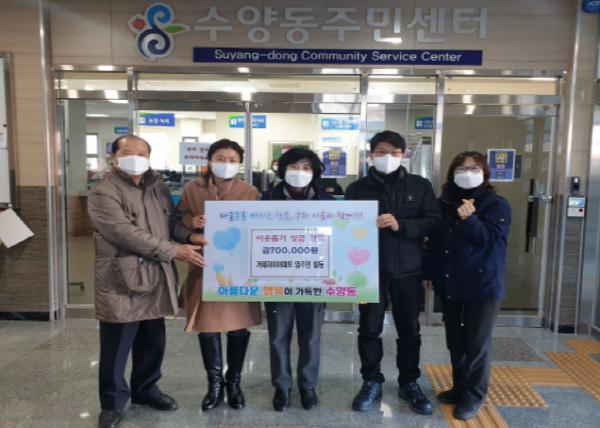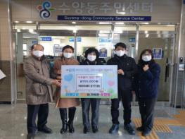한편 수양동은 이번 성금을 사회복지공동모금회를 통하여 지역 내 기초생활수급자 등 저소득 세대에게 전달할 예정이다.