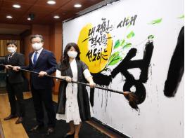 이날 시무식은 직원들을 위한 격려와 응원의 메시지 영상을 시작으로, 구청장 신년사, 2021 구정방향을 캘리그라피로 표현하는 희망 퍼포먼스 순으로 진행됐다.
