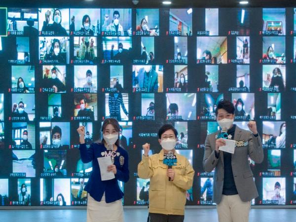 영상은 박정현 구청장의 신년사를 시작으로, 부서별 새해 인사와 신년 각오를 담은 동영상, 현악 4중주 등 공연과 2021년 5대 구정 운영 방향이 담겨 구민들을 위해 열심히 일하겠다는 공직자의 자세와 각오를 보여줬다.