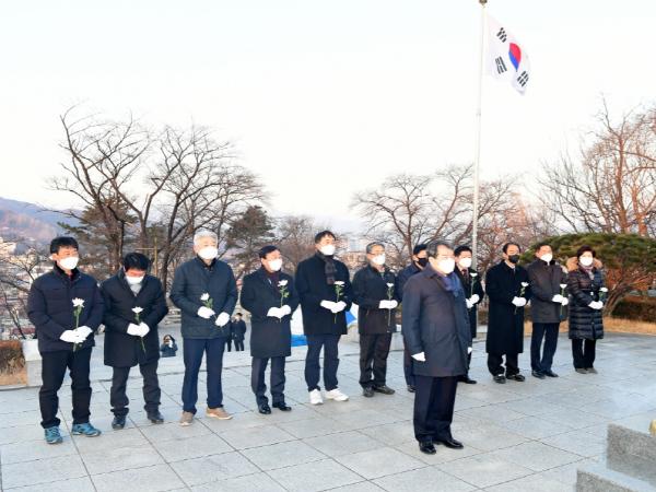 김충섭 김천시장은 1월 4일 오전 8시에 성내동 내 충혼탑에서 신년참배를 하였다.