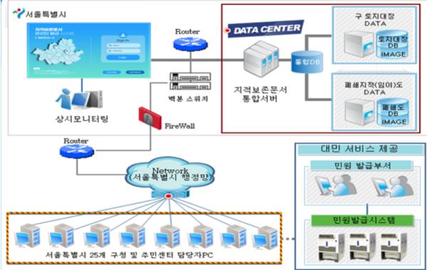 시는 이러한 어려움을 해소하는 한편, 지적보존문서의 훼손?재난 등에 대비한 안정성 확보를 위해 25개 자치구의 보존문서를 표준화하여 서울시 데이터센터 서버에 통합 구축하고 민원발급을 위한 프로그램을 개발하여 보급하였다.
