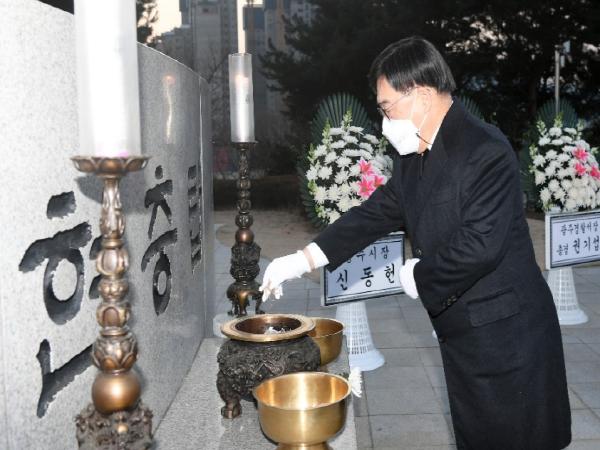 신동헌 시장은 4일 2021년 신축년(辛丑年) 새해를 맞이해 현충탑을 찾아 참배를 하는 것으로 새해 첫 일정을 시작했다.