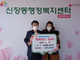 오산시 신장동행정복지센터(동장 유영만)는 지난 30일 신장동통장단협의회 총무 김주희통장이 관내 저소득 취약계층의 코로나19 극복과 지역사회 복지증진을 위한 이웃돕기 후원금 100만원을 기탁했다고 밝혔다.