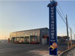 남부권 임대사업소는 효율적인 농작업 지원을 위해 대산면 성남리 부지(6461㎡)에 지난해 6월 착공했다. 건축 면적 957.65㎡(290평)에 총사업비는 20억원이다. 사무실과 농기계 보관창고(728㎡), 세척장(52㎡), 콩선별장(177㎡)이 들어섰고, 관리기 등 37종 150대 농기계를 보유하고 있다.