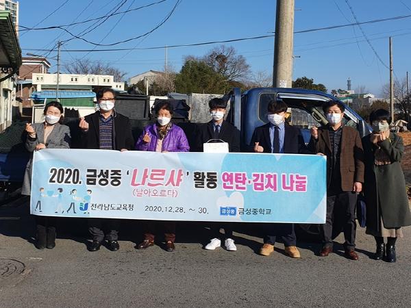 나주시 성북동은 금성중학교 학생들이 취약계층의 따뜻한 겨울나기를 위한 사랑의 연탄 및 김장 김치 배달 봉사를 실시했다고 4일 밝혔다.