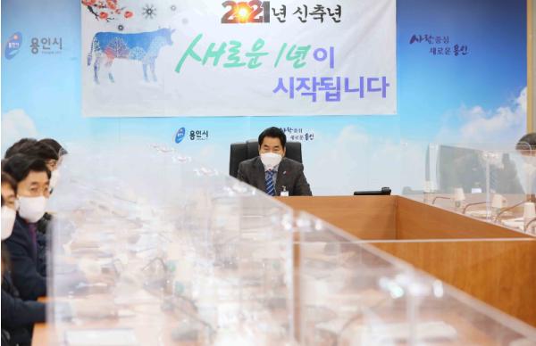 용인시는 4일 시청 영상회의실에서 4급이상 간부 공무원과 35개 읍?면?동장이 영상회의 시스템을 활용해 시무식을 갖고 새해 업무를 시작했다고 밝혔다.