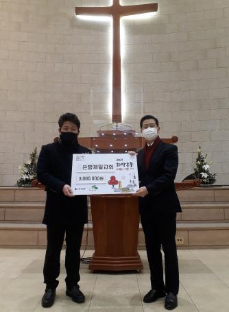 은평구 은평제일교회가 코로나19 극복 활동에 동참하기 위해 희망나눔 후원금을 진관동주민센터에 전달했다.
