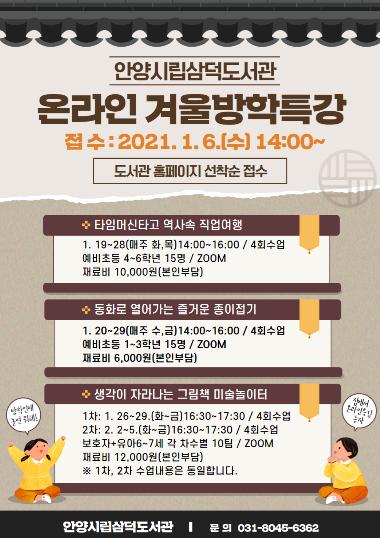 안양시립삼덕도서관이 겨울방학을 맞이한 어린이들을 위해 집에서도 참여할 수 있는 온라인 특강 프로그램을 운영한다.