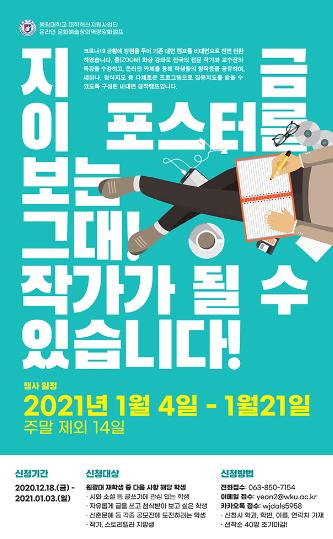 프로그램은 1월 4일 인문학연구소장 강연호(문예창작학과) 교수의 ‘시 창작 특강’을 시작으로 시와 소설 분야 전문 강사 특강이 1월 21일까지 진행된다.