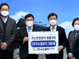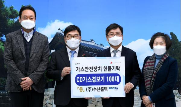 광주시 삼동에 위치한 ㈜수산홈텍 이홍구 대표는 지난 4일 광주시청을 방문해 취약계층을 위해 사용해 달라며 가스안전장치(일산화탄소 경보기) 현물 100대를 기탁했다.