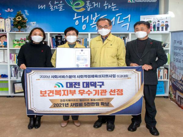 대전 대덕구는 보건복지부 주관 ‘2020년 사회서비스분야 사회적경제 육성지원사업’에서 우수기관으로 선정됐다고 5일 밝혔다.