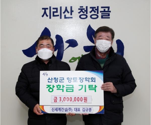 산청지역 향토기업인 신세계건설(주)이 5일 산청군향토장학회에 300만원의 장학금을 기탁했다.