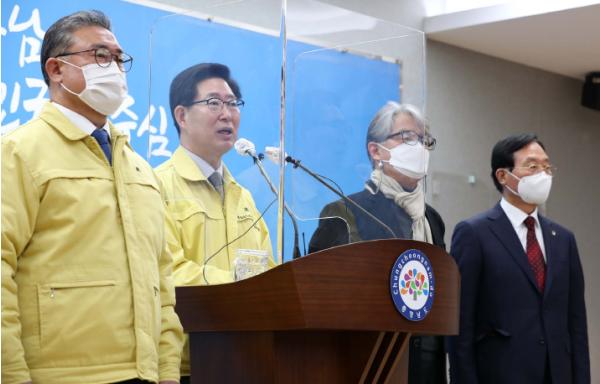 양승조 지사는 5일 도청 프레스센터에서 온·오프라인으로 새해 첫 기자회견을 열고 “KBS가 올해 1월 1일 조직 내 ‘지역신청사프로젝트팀’을 출범하고, ‘충남방송국 설립’을 우선 과제로 선정했다”고 밝혔다.
