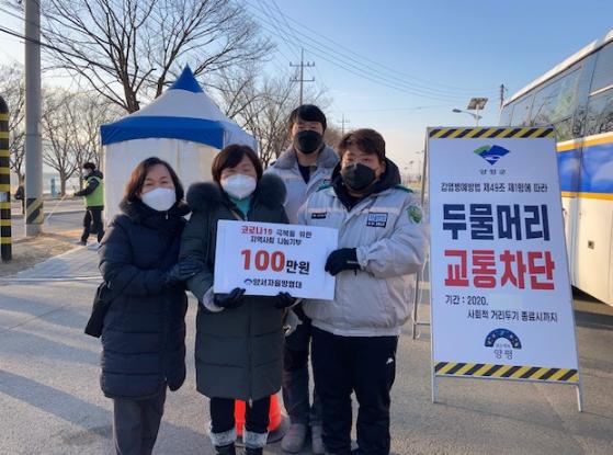 양평군 양서자율방범대(대장 곽태호)는 지난 1월 1일 새해 해맞이 명소 방문객 통제 지침에 따라 두물머리 방문객 통제 자원봉사에 참여하고, 양서면 저소득층을 위해 써달라며 성금 100만원을 기부했다.