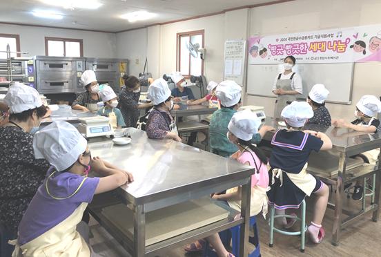 첫째, <빵긋 빵긋, 세대 나눔>은 6월부터 10월까지 5회로 진행, 돌봄터 이용 아동과 국민연금공단 수급자 모임의 할아버지 할머니를 1대1 매칭, 베이킹 프로그램을 함께 진행하여 돌봄터 이용 아동들에게는 노인세대에 대한 긍정적 이미지와 함께 세대 교감을 통한 인성교육의 기회를 제공하고 동시에 역할상실로 무력감에 빠져있는 수급자에게는 새로운 역할을 부여하는 계기가 되었다.