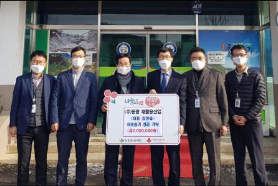 동광재활용산업은 금과면에 소재하고 있는 기업으로 현재 콘크리트 타일, 기와, 벽돌 등을 생산하고 있으며 지난해에도 성금을 기탁하는 등 매년 지역사회에 온정을 전하고 있다.