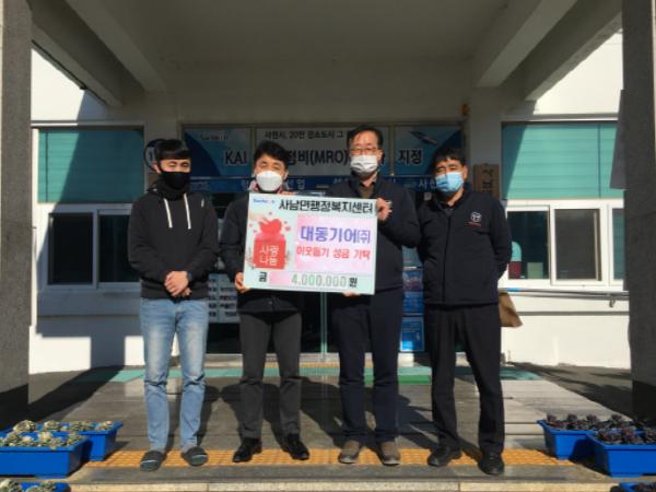 이날 한국사스공사 사천지사가 백미(10) 130포(450만원 상당), (사)대한민국 팔각회 경남지구 남부지역 회장단협의회가 성금 200만원, 사천읍주민자치위원회가 성금 50만원을 각각 기탁했다.