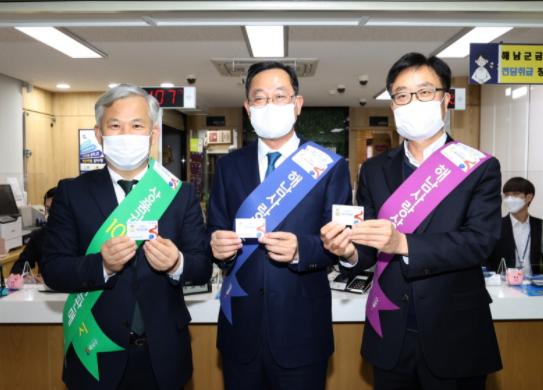이와 관련 군은 명현관 해남군수와 김병덕 군의장, 김상보 NH농협은행해남군지부장이 참석한 가운데 해남군청 농협출장소에서 해남사랑카드상품권 신청과 함께 카드를 발급받는 카드상품권 출시 기념식을 가졌다.
