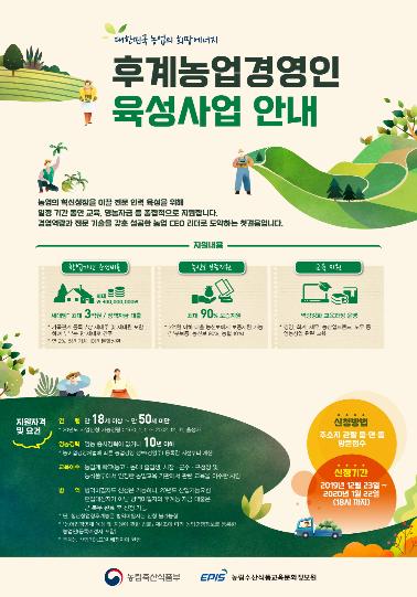 이정주 농축산과장은 “자금지원과 교육지원 등 혜택이 많은 만큼 후계농업경영인에 해당되는 농업인들은 많이 신청하기 바란다”고 전했다.
