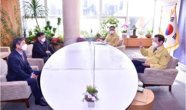 이용섭 광주시민프로축구단 구단주(광주광역시장)는 5일 오전 시청 접견실에서 새롭게 선임된 광주FC 최만희 대표이사, 김호영 감독을 만나 시민들을 위한 구단으로 거듭날 수 있도록 노력해 달라고 당부했다.