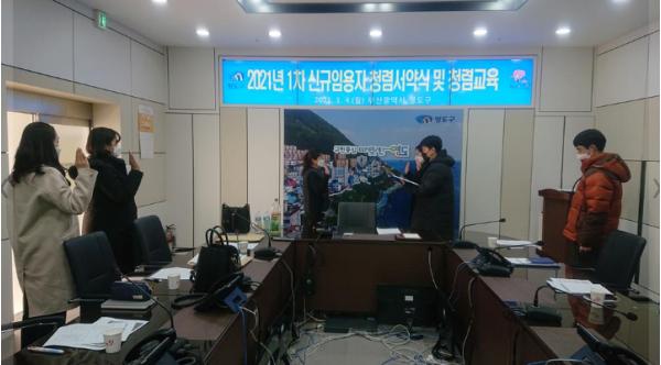 영도구는 지난 1월 4일 구청 6층 재난상황실에서 공직에 첫 발을 내딛는 신규 공무원 5명을 대상으로 공직자로서 올바른 자세 확립을 위한 청렴 서약식 및 청렴교육을 실시했다.