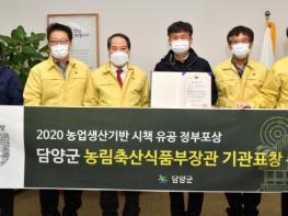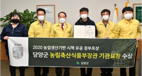 담양군은 최근 농림축산식품부 주관 2020년도 농업생산기반 시책 평가에서 전라남도에서 유일하게 우수지자체로 선정돼 기관표창을 수상했다고 5일 밝혔다.