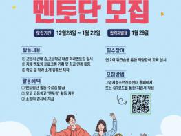 모집공고의 온라인 링크나 QR코드를 통해 온라인으로 지원서를 접수하면 되고 신청기간은 오는 22일까지다. 선정된 대학생 멘토에게는 활동 내용에 따라 활동확인서와 소정의 강사료를 지급한다.