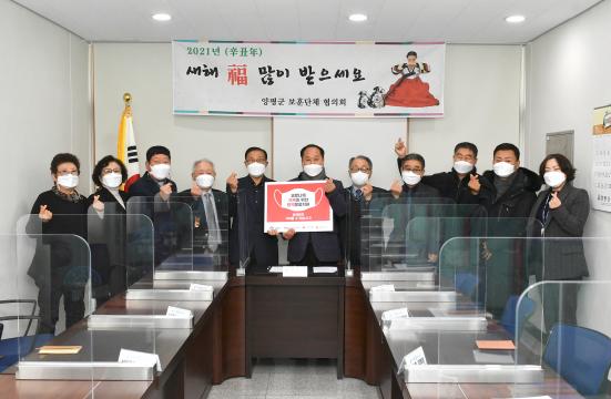 양평군에서는 지난 5일 양평군 보훈회관에서 코로나19의 지역사회 확산을 예방하고, 국가보훈대상자 예우를 위해 관내 9개 보훈단체 위원장이 참석한 가운데 마스크 전달식을 가졌다