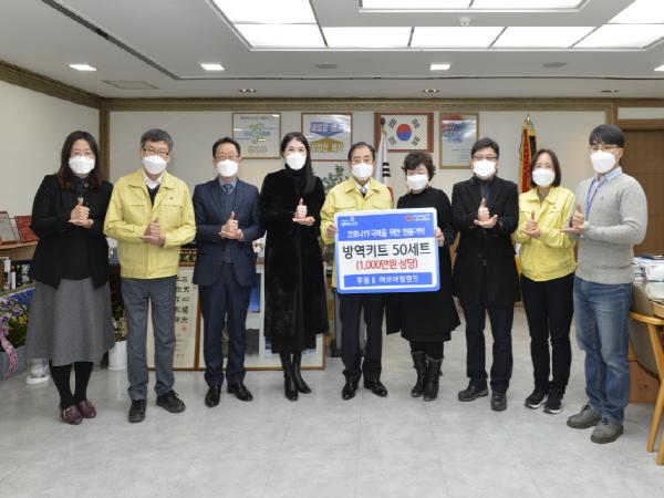 임옥 대표는 “코로나19 방역 및 소외계층 지원에 힘을 보태고자 물품을 기탁하게 됐다.”며 “코로나19 방역 최전선에서 고생하는 의료진과 포천시에 감사드린다.”며 응원의 메시지를 전했다.