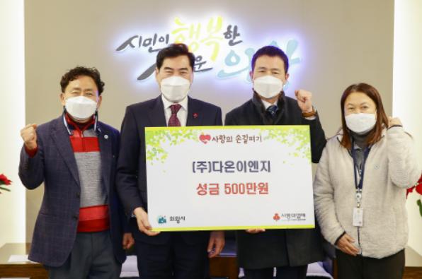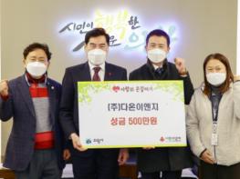 의왕시 고천동에 소재한 전기공사 전문업체인 (주)다온ENG에서 5일 주변의 어려운 이웃을 위해 사용해달라며 현금 500만원을 의왕시에 전달했다.