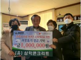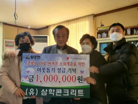 익산시 왕궁면 (유)삼학콘크리트는 6일 행정복지센터를 방문해 복지사각지대에 있는 어려운 이웃을 위해 써달라며 후원금 100만원을 쾌척했다.