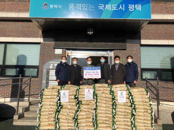 평택시 청북읍 소재 ㈜도프는 6일 코로나19 장기화로 어려움을 겪고 있는 이웃을 위해 쌀 10㎏ 200포(560만원 상당)를 평택시 안중출장소에 기탁하며 새해 시작부터 따뜻한 감동을 전했다. 기탁된 성품은 평택 서부권역 5개 읍?면 지역의 저소득 가구 및 복지사각지대에 전달된다.