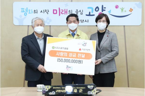 고양시는 지난 5일, 1.2.3.골프클럽에서 코로나19 희망 나눔을 위해 사랑의 성금 5천만 원을 기부했다고 밝혔다.
