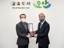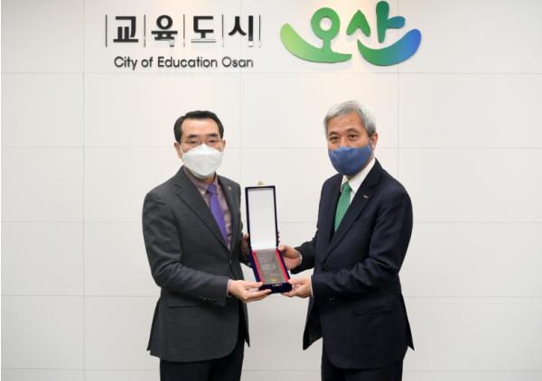 오산시가 생명 나눔 실천과 인간의 생명보호를 위한 혈액 사업 발전에 크게 기여한 공로를 인정받아 지난 5일 대한적십자사 회장 감사패를 받았다.
