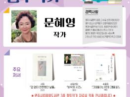 문혜영 작가는 1982년 수필가로 등단해 작품 ‘어린 날의 초상’이 국정교과서 중학국어 1-1에 실린 바 있으며, 2020강원문화재단 우수창작지원금으로 시집 <겁 없이 찬란했던 날들>을 발간했다.
