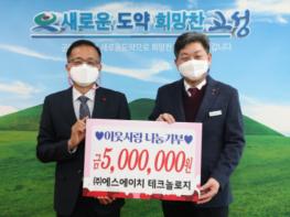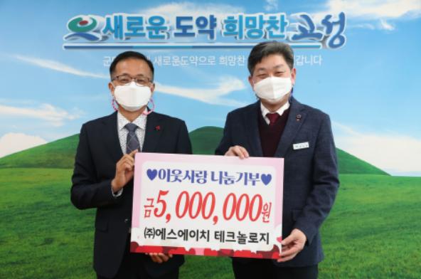고성군은 막구조물 MAS 등록업체 ㈜에스에이치 테크놀로지가 1월 5일 군청을 방문하여 어려운 이웃을 위해 성금 500만 원을 전달했다고 밝혔다.