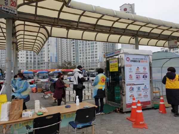 이를 위하여 2021년 지역방역일자리사업으로 통영종합버스터미널 방역부스에 기간제 근로자가 배치되며 오는 1월 18일까지는 통영시 적십자 봉사회(회장 안정숙)에서 방역봉사를 이어나갈 예정이다.